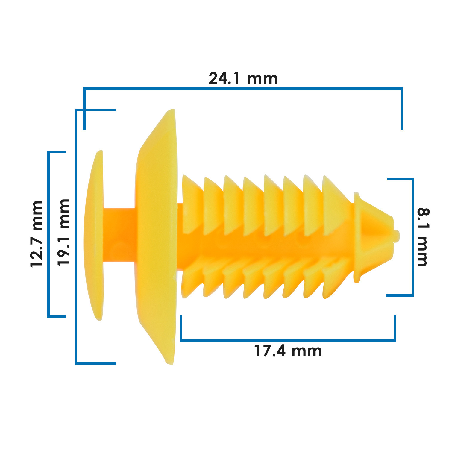 Grapa tapicería universal. Nylon amarillo. Compatible con Silverado, Windstar, RAM 700, Civic y más.
