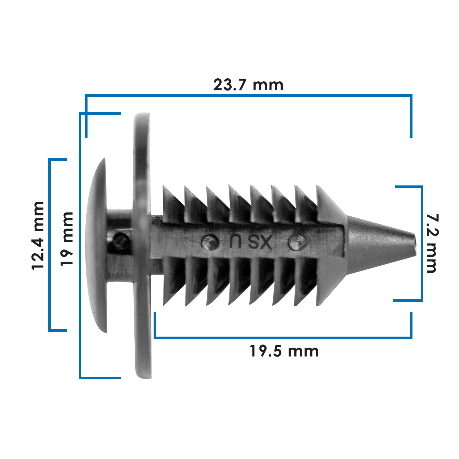 Grapa/pija de tapicería en nylon negro para modelos Ford (Taurus, Thunderbird, Cougar, Sable, Lincoln Mark VIII) y Dodge Ram (1500, 2500, 3500). Sujetador automotriz duradero y fiable, ideal para asegurar paneles interiores y molduras.