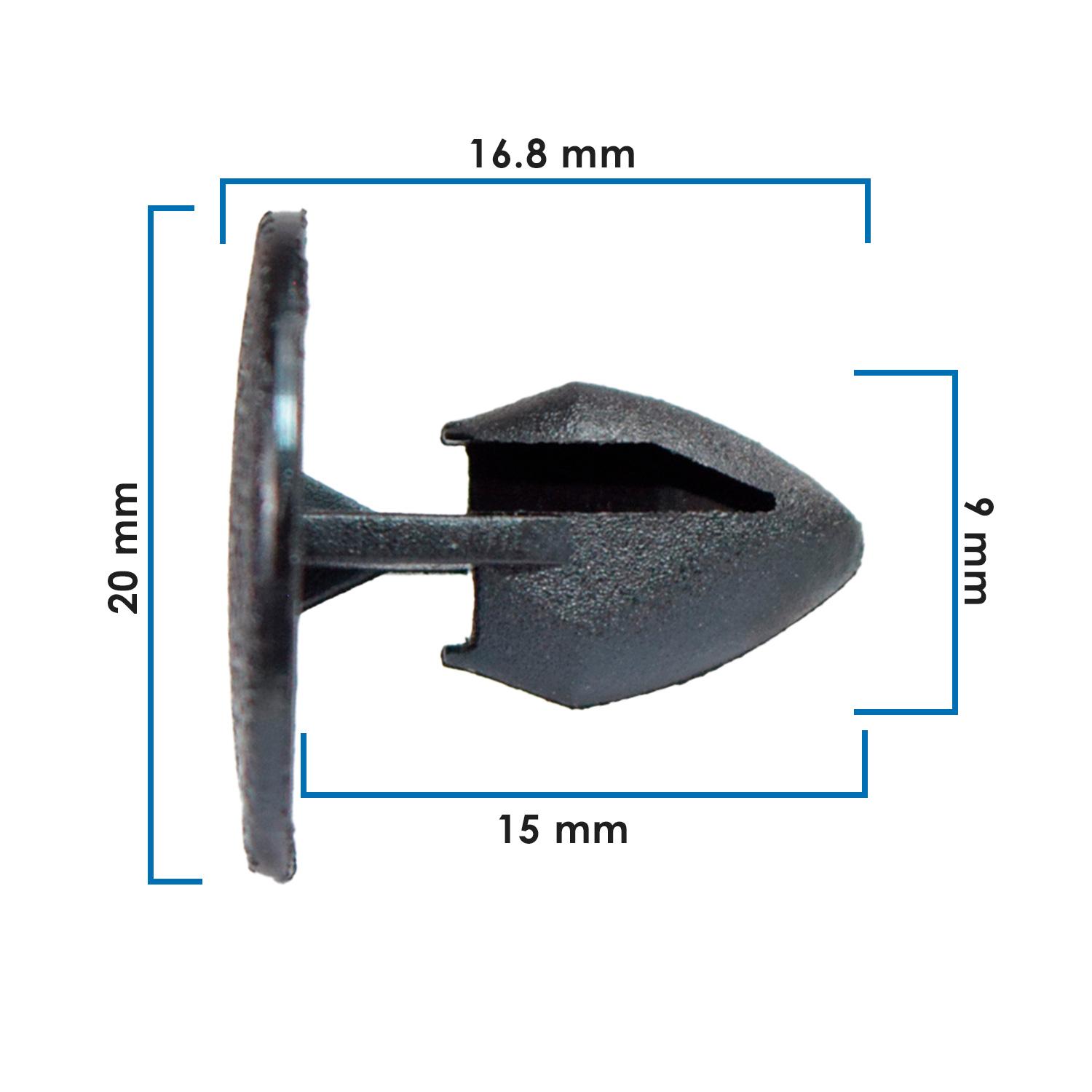 Pijas de tapicería universales son ideales para fijar paneles de puerta en vehículos Nissan y Dodge. Están fabricadas en nylon negro de alta resistencia, lo que las hace perfectas tanto para reemplazos como para restauraciones en interiores automotrices.