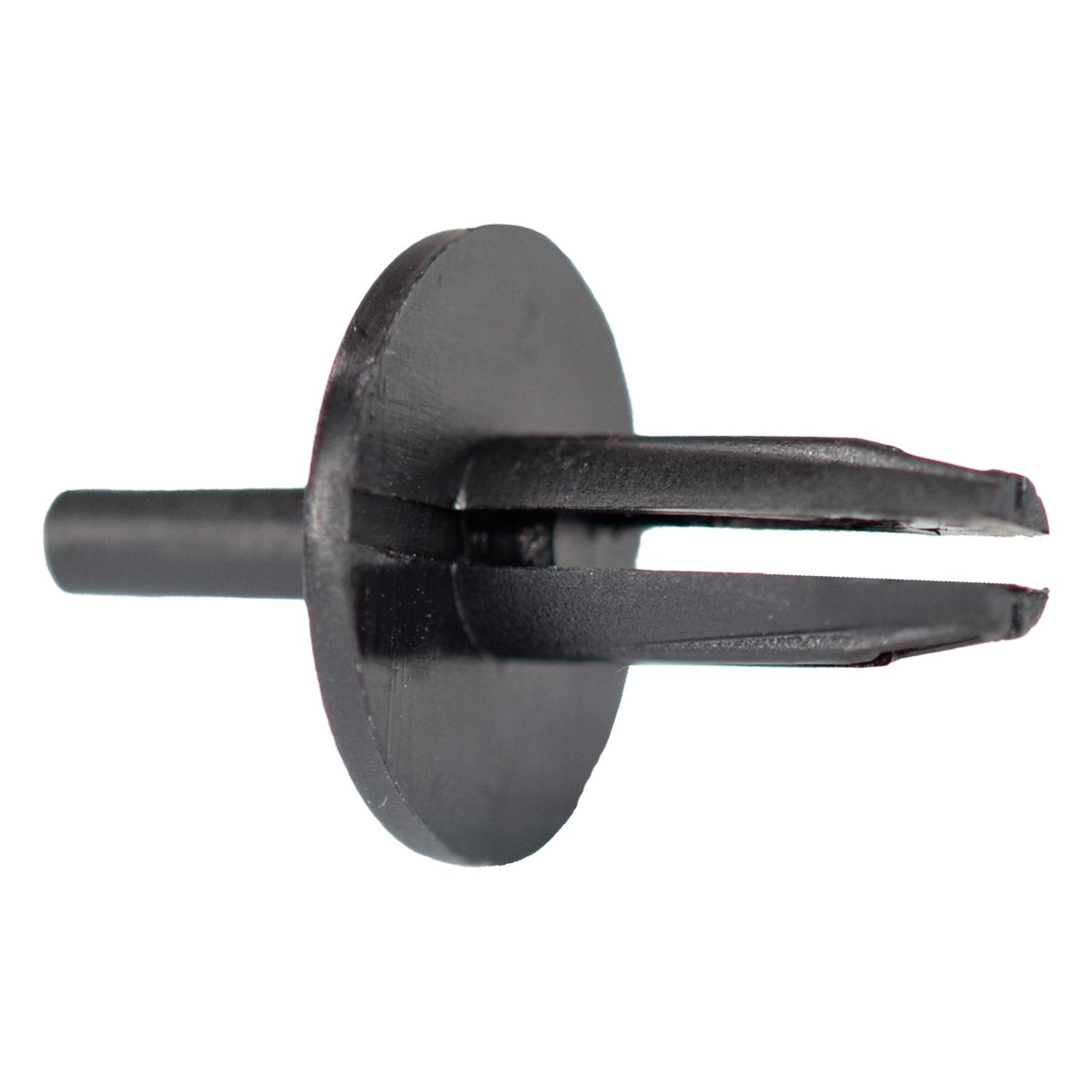 Remache de nylon universal negro, diseñado para uso general en automóviles. Ideal para unir paneles plásticos, tapas, molduras y otros elementos con sujeción firme. Compatible con orificios de 6,4 mm (¼″).